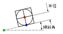 最初の2クリックで接線と接点を入力します。最後のクリックで円の中心を指示して円と円を囲む正方形を描きます。