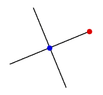 ■中点からクロス 任意の角度に傾いたクロスラインを描きます。 このツールも、他のオブジェクトと中心を一致させることを目的に作りました。まず中心をクリックしてから4端点のいずれかをクリックしてください。描かれた二本の直線は等しい長さです。
